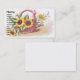 Uma cesta de girassóis bonito com alguns miosótis. Um cartão do comércio do victorian do 1800's.