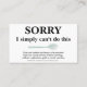 De Visita Desculpe Cartão com Colher para Colheres