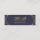 Modelo do cartão do vale do disconto dos meios sociais azuis da meia-noite geométricos Dourados na moda minimalistas chiques modernos do teste padrão o mini é fácil de personalizar! Editável & customizável! Aperfeiçoe para muitas profissões criativas visuais da borda que olham ideais para o planejador de evento, o planejador Wedding, o consultante, os estilistas, os desenhistas, os maquilhadores, o salão de beleza e profissionais criativos. Também apropriado para outros desenhistas das profissões, o decorador interior, estimatriz do custo, gestor de projecto, consultante de relações públicas, terapeuta ocupacional do conselheiro da escola, dentista, farmacêutico, psicólogos, psiquiatra, contador, taxa o profissional, conselheiro financeiro, mediador imobiliário, advogado, advogado, procurador, Paralegal, vendedor da roupa, profissional legal, software/programador web, programador, Chiropractor, analista de computador, administrador de base de dados, líquido de limpeza, veterinário, intérprete & tradutor, representante de vendas, assistente social e muitos outros profissionais. (Folha do ouro NÃO, uma imagem)