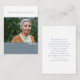 Durante um tempo de luto e perda, ter um guardião ou um favor memorial para os hóspedes presentes num funeral, celebração da vida, serviço memorial ou acordar é muito reconfortante. Durante um tempo de luto é importante ajudar todos a encontrar momentos de conforto. Estas elegantes e saborosas cartas de oração fotográfica oferecem condolências e paz. Lindas cinzas azuis e brancas com fontes clássicas e sentimentos pensativos no verso ajudarão você a encontrar formas de oferecer paz. Tudo é facilmente personalizável para troca com suas próprias informações pessoais. Há uma variedade de produtos de memória na coleção Modern Soft Blue/Cinza e White Remembrance para ajudar a facilitar o planejamento de seu serviço.