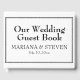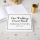Um livro de hóspedes moderno e elegante para os convidados do casamento assinarem, usando o tema de Casamento Branco Minimalista da Fronteira Moderna.
