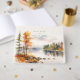 Ponha o tom para a sua casamento outono com este romântico Livro de Convidados, com um lago sereno e uma cena de montanha em camadas sobre impressão de linho rústico. Perfeito para um casamento confortável ao ar livre, elopeios de outono ou casamentos de destino pela água. Personalizável com seus nomes, datas e local - parte de nossa Coleção de Casamentos outono de um pacote de artigos de papelaria coordenado.