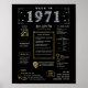 Traga-se de volta para 1971 com nosso poster de aniversário digital cativante, rico de fatos históricos, eventos notáveis e histórias intrigantes do passado. Decorado com ouro elegante e sotaques prateados colocados contra um pano de fundo preto impressionante, adornada com símbolos únicos e texto de na moda, este poster de aniversário emana o encanto do eterno. Quer iniciando conversas em encontros de aniversário ou queridas como lembrança, ela invoca relembrações nostálgicas. O nosso poster de aniversário oferece uma visão de 1971, mergulhando em aspectos como renda média, invenções notáveis, eventos significativos, tendências de moda e coloquialismos da época. Destaca momentos fulcrais como a mania, a febre da discoteca e o surgimento de videos games. Invenções notáveis, como a primeira câmera digital, telefone celular e email, também são mostradas, refletindo o progresso tecnológico da era. No geral, o poster de aniversário captura a essência da vida nos anos 1971, encapsulando tecnologia, custo de vida e fenômenos culturais como música e moda. Serve como um início memorável de conversa em festas de aniversário e aniversários, e quando enquadrado, torna-se um bem-estar apreciado, preservando o espírito dos tempos.
