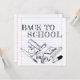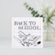 De volta ao Motif da Escola em rabiscos infantis com utensílios escolares em fundo de escrevendo.