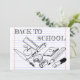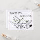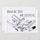 De volta ao Motif da Escola em rabiscos infantis com utensílios escolares em fundo de escrevendo.