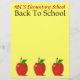 Personalize facilmente esta brilhante e alegre papelaria personalizada com qualquer escola ou nome de qualquer professor. Ilustração original com três maçãs vermelhas cada uma com uma folha verde no fundo. Muito espaço de cópia a ser gravado mais tarde. ideia de presente pessoal de excelente para professores e administradores de escolas. O texto "Voltar à escola" faz parte da design com as maçãs. A cor de fundo amarela pode ser facilmente alterada.