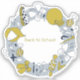 Coisas divertidas e fofas para o ano letivo estão prontas! Adesivos coloridos para mochila escolar, scrapbooking, cartas, trabalhos de casa, bilhetes de agradecimento e muito mais. O design apresenta pequenas coisas da escola - boné, mochila, relógio, doces, laço, gravata, símbolo musical e nota, maçã e cereja em verde oliva e branco - como borda em fundo azul claro, e uma área de escrita branca. Você pode personalizar o texto do modelo adicionando o nome do professor ou da criança ou uma nota para um presente especial ou celebração!