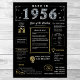 Entre em 1956 com nossa cativante poster de aniversário digital, repleta de fatos históricos, eventos notáveis e histórias intrigantes do passado. Adornada com detalhes elegantes de ouro e prata sobre fundo negro ousado, com símbolos únicos e texto de na moda, este poster de aniversário expele o encanto do eterno. Seja provocando conversas em reuniões de aniversário ou apreciado como um guardião, evoca memórias nostálgicas. Nosso poster de aniversário oferece uma visão de 1956, explorando aspectos como renda média, invenções populares, eventos significativos, tendências da moda e gíria do tempo. Destaca momentos-chave como a primeira emissão de TV a cores, a explosão do bebê de guerra poste, a ascensão do rock and roll, e o desenvolvimento da vacina contra a pólio. Invenções notáveis como a fotocopiadora, a bateria alcalina e a bomba de hidrogênio também são apresentadas, mostrando os avanços tecnológicos da era. No geral, o poster de aniversário capta a essência da vida nos anos 50, englobando tecnologia, despesas de vida e tendências culturais como música e moda. Ele serve como uma peça memorável de conversa em festas de aniversário e aniversários e faz uma cuidadosa manutenção quando enquadrado.