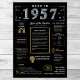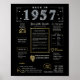 Entre em 1957 com nossa cativante poster de aniversário digital, repleta de fatos históricos, eventos notáveis e histórias intrigantes do passado. Adornada com detalhes elegantes de ouro e prata sobre fundo negro ousado, com símbolos únicos e texto de na moda, este poster de aniversário expele o encanto do eterno. Seja provocando conversas em reuniões de aniversário ou apreciado como um guardião, evoca memórias nostálgicas. Nosso poster de aniversário oferece uma visão de 1957, explorando aspectos como renda média, invenções populares, eventos significativos, tendências da moda e gíria do tempo. Destaca momentos-chave como a primeira emissão de TV a cores, a explosão do bebê de guerra poste, a ascensão do rock and roll, e o desenvolvimento da vacina contra a pólio. Invenções notáveis como a fotocopiadora, a bateria alcalina e a bomba de hidrogênio também são apresentadas, mostrando os avanços tecnológicos da era. No geral, o poster de aniversário capta a essência da vida nos anos 50, englobando tecnologia, despesas de vida e tendências culturais como música e moda. Ele serve como uma peça memorável de conversa em festas de aniversário e aniversários e faz uma cuidadosa manutenção quando enquadrado.