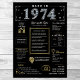 Traga-se de volta para 1974 com nosso poster de aniversário digital cativante, rico de fatos históricos, eventos notáveis e histórias intrigantes do passado. Decorado com ouro elegante e sotaques prateados colocados contra um pano de fundo preto impressionante, adornada com símbolos únicos e texto de na moda, este poster de aniversário emana o encanto do eterno. Quer iniciando conversas em encontros de aniversário ou queridas como lembrança, ela invoca relembrações nostálgicas. O nosso poster de aniversário oferece uma visão de 1974, mergulhando em aspectos como renda média, invenções notáveis, eventos significativos, tendências de moda e coloquialismos da época. Destaca momentos fulcrais como a mania, a febre da discoteca e o surgimento de videos games. Invenções notáveis, como a primeira câmera digital, telefone celular e email, também são mostradas, refletindo o progresso tecnológico da era. No geral, o poster de aniversário captura a essência da vida nos anos 1970, encapsulando tecnologia, custo de vida e fenômenos culturais como música e moda. Serve como um início memorável de conversa em festas de aniversário e aniversários, e quando enquadrado, torna-se um bem-estar apreciado, preservando o espírito dos tempos.