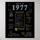 Passo a 1977 com o nosso poster de aniversário digital cativante, cheio de fatos históricos, eventos significativos e narrativas intrigantes do passado. Adorado com ouro elegante e sotaque prateado contra um pano de fundo preto impressionante, embelezado com símbolos únicos e texto de na moda, este poster de aniversário meticulosamente trabalhado expele o fascínio do eterno. Seja exibido de forma destacada em reuniões de aniversário ou apreciada como um guardião, promete iniciar conversas e alimentar memórias amáveis. O nosso poster de aniversário dá um vislumbre em 1977, explorando facetas como renda média, invenções notáveis, ocorrências significativas, tendências da moda e expressões coloquiais da era. Destaca momentos fulcrais como a paixão, a febre da discoteca e a ascensão dos videos games. Invenções notáveis, como a primeira câmera digital, telefone celular e e-mail, também são apresentadas, refletindo os avanços tecnológicos da era. No geral, o poster de aniversário captura a essência da vida nos anos 1970, encapsulando a inovação tecnológica, o custo de vida e fenômenos culturais como música e moda. Serve como um recordista memorável em comemorações de aniversário e aniversários, e, quando emoldurado, transforma-se numa lembrança estimada, preservando a essência da era.