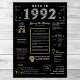 Entre em 1992 com o nosso cativante poster de aniversário digital, repleta de fatos históricos, eventos significativos e narrativas mesmerizantes do passado. Adorado com ouro elegante e sotaques prateados contra um pano de fundo preto em greve, este poster de aniversário emana charme de eterno. O nosso poster de aniversário oferece uma visão intrigante de 1992, mergulhando em aspectos como renda média, invenções notáveis, ocorrências significativas, tendências da moda e expressões coloquiais da época. Ela acende momentos-chave como a bolha Dot-Com, a ascensão de bandas de garotos, o advento da Internet discada, e o pânico Y2K. Invenções notáveis como a World Wide Web, mensagens de texto, MP3 e a câmera digital são destacadas, refletindo os notáveis avanços tecnológicos da era. Ao todo, o poster de aniversário capta a essência da vida nos anos 1990, encapotando tanto a inovação tecnológica quanto os fenômenos culturais como a música e a moda. Serve como um começo de conversa cativante em comemorações de aniversário e aniversários, e quando elegantemente enquadrado, evolui para uma lembrança apreciada, preservando o espírito dos tempos para as gerações vindouras.