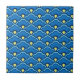 Azulejo cerâmico em forma de escala ou onda chinesa, tradicional em trabalho têxtil e esmalte, em azul-oceano/ceruliano, turquesa, índigo-escuro e sotaque de manteiga clara amarela