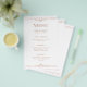 Este cardápio glamouroso de casamento apresenta um giro moderno em deco clássico de arte. Ornamentado, falso rosa dourado parece bordas geométricas e ornamentação decoram um fundo branco elegante para um espetáculo de janto dramático, da década de 1920.