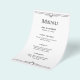 Este cardápio glamouroso de casamento apresenta um giro moderno em deco clássico de arte. Ornamentado, bordas geométricas negras e ornamentação decoram um fundo branco elegante para um olhar dramático e jante da década de 1920.