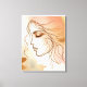 Uma ilustração de uma figura feminina em bronze, ouro e listras de ouro nas cores de fundo. Ao redor do rosto há um casal de linhas desenhadas à mão, wisps e tendrils numa cor de ouro bronzeado. O fundo da aquarela tem cor-de-rosa suave, pêssego