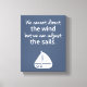 Palavras de sabedoria para uma mentalidade positiva especialmente para alguém que está sofrendo grandes mudanças na vida. A design inclui um pequeno barco a vela e uma citação que diz "Não podemos direcionar o vento, mas podemos ajustar as velas." Não podemos controlar o que a vida nos apresenta, mas podemos tentar fazer o nosso melhor para fazer escolhas sábias dadas as circunstâncias. Uma peça decorativa excelente para ficar positiva. A cor de fundo pode ser alterada.