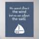 Palavras de sabedoria para uma mentalidade positiva especialmente para alguém que está sofrendo grandes mudanças na vida. A design inclui um pequeno barco a vela e uma citação que diz "Não podemos direcionar o vento, mas podemos ajustar as velas." Não podemos controlar o que a vida nos apresenta, mas podemos tentar fazer o nosso melhor para fazer escolhas sábias dadas as circunstâncias. Uma peça decorativa excelente para ficar positiva. A cor de fundo pode ser alterada.