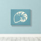 Um invólucro creme de concha num fundo azul dá a esta tela o estilo náutico de impressão. Use esta decoração da parede da concha em uma casa de praia, banheiro, quarto, sala de estar, etc...A imagem é da arte original.