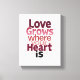 A frase "O amor cresce onde seu coração está" nesta obra romântica de arte de parede. Ideal para quartos, presentes de casamento, ou berçários, esta impressão evoca calor e beleza natural.