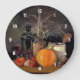 Férias de Ação de Graças ou um dia de outono. Altere qualquer uma das imagens e texto para as suas. Ou manter este belo relógio como está. A cena é uma mesa Decorativa para o outono. Mostra-se uma garrafa de vinho, uvas, maçãs, uma abóbora e outras decorações de outono dentro da foto. Entre em contato comigo diretamente com as perguntas do site admin@giftsyoutreasure.com Todas as minhas lojas do Zazzle estão disponíveis no site http://bit.ly/SandyspiderStores