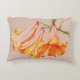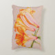 Almofada de almofada cor de espinho natural com lírios laranja finos em arte, criada a partir de um desenho original a lápis e pintura a aguarela ‘Lilies’ por Sarah Trett. www.sarahtrett.com para www.mylittleeden.com em zazzle.