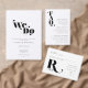 Uma fonte ousada e decorativa imediatamente pega seu olho e define o tom para a maioria das peças desta suíte de casamento moderna e minimalista. O menu de recepção de casamento mostrado aqui apresenta um layout de offset com bastante espaço em branco para adicionar seleções de menu adicionais, se necessário. As costas têm uma amberanda com sotaque cardíaco único e com suas iniciais. Procure ID887 para ver todos os produtos neste conjunto de casamento.
