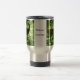 Uma caneca de viagem com uma foto de um veado na floresta