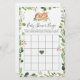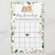 O cartão de jogo de bingo de chá de fraldas de veado apresenta uma ilustração de veados de aquarela e verde-aquarela eucalyptus garland e uma elegante fonte de estilo manuscrito.
