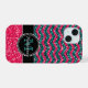 Capa de telefone do padrão quevon brilhante preto-e-rosa. Personalizado com seu nome e monograma. Design por Caroline Leskiw