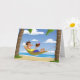 Esta design é de um homem deitado em uma rede. O homem tem um grande sorriso e está segurando uma bebida. Isto deitado numa design de hammock parece excelente neste Cartões Saudáveis