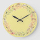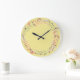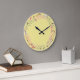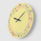 Bonito relógio de parede apresenta fundo amarelo com folhas de aquarela cortadas em várias cores