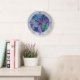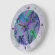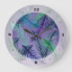 Plantas folhas padrão, fundo roxo, relógio de parede botânica.