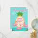Você teve o divertimento Flamingling em sua festança do aniversário e agora é hora de agradecer a todos seus convidados. Estes cartões de agradecimentos adoráveis do flamingo caracterizam flamingos cor-de-rosa bonitos, quadro do abacaxi, e uma turquesa/fundo azul da viga.