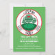 Um design impressionante perfeito para a celebração do aniversário de um jogador de golfe! O fundo verde tem um emblema do golfe do círculo "deixou-nos jogar" com árvores e uma bandeira no verde.