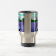 Esta caneca de viagem do café ou do chá caracteriza uma fotografia de uma canoa em um lago em Montana com as palavras "deixou o amor seja seu guia!"