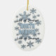 design gráfico de flocos de neve pelo artista/designer Charmaine Paulson em um Enfeites de natal. O ornamento tem o texto "Let it Snow North Dakota", e modelos para sua personalização.