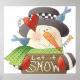 Um boneco de neve segurando um sinal de neve. Esta design parece realmente eficaz nestes Poster