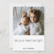 Um cumprimento simples, moderno: deixe seu coração ser luz. Personalize com seus foto e cumprimento favoritos de família. A parte traseira caracteriza flocos de neve azuis modernos, geométricos.