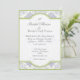 Esta coleção de casamento inspirada na vintage tem um conjunto completo de produtos. Este design consiste de um padrão detalhado de gravação gravado em vintage que foi feito em segundo plano. Tem uma sensação de umidade do corpo. A fronteira suave do verde limão de um quatrafoil central design e a borda exterior lhe dão uma essência contemporânea e imprevisibilidade. O trabalho de arte foi pintado na antiguidade e reorganizado em uma paleta de cores e layout agradáveis. O verso é uma versão azul mais escura do mesmo padrão.