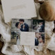 Este delicado cartão de agradecimento com modelo para 4 fotos em dourado e creme é perfeito para um casamento moderno. O design minimalista romântico apresenta uma tipografia adorável e elegante em amarelo dourado champanhe sobre um fundo marfim creme com uma aparência limpa e simples. Personalize o verso do cartão com seus nomes e uma mensagem de agradecimento. Alternativamente, deixe a seção do modelo de mensagem de agradecimento em branco para escrever uma nota personalizada à mão em cada cartão após chegarem. Estes cartões podem ser usados para um casamento, chá de noiva ou qualquer evento especial.