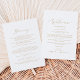 Estas delicadas cartas de boas-vindas e cartas itinerárias são perfeitas para um casamento moderno. A design romântica minimalista apresenta uma magnífica e elegante tipografia amarela ouro champanhe num fundo branco com um aspecto simples e limpo. A frente da carta apresenta uma carta de boas-vindas e a parte de trás da carta apresenta o itinerário do casamento. Estas notas são perfeitas para casamentos de destino e bolsas de boas-vindas de hóspedes.