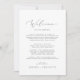 Este delicado itinerário de boas-vindas e cartas de mapa são perfeitos para um saco de boas-vindas ao casamento. A design romântica minimalista apresenta uma magnífica e elegante tipografia de cinza prateada num fundo branco com um aspecto simples e limpo. A frente do cartão apresenta uma carta e um itinerário bem-vindos. Inclua um mapa do seu recurso com locais importantes anotados na parte traseira da placa.