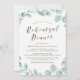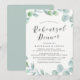 Os convites de janto de ensaio elegantes são perfeitos para serem usados em casamentos de primavera e verão. O design apresenta uma coroa botânica verde-aquática moderna, caligrafia na moda, fundo branco na frente e cor verde-sábio no verso (mude a cor de fundo com a ferramenta Personalizar).