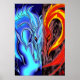 Dois demônios, um de água e outro de fogo, olhando zangados um com o outro, prontos para uma luta. Esta é uma arte gerada por IA.