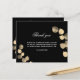Um cartões de agradecimentos de simpatia simples e elegante com a foto. Um fundo preto clássico, e ouro de cinzas de ecalyptus, folhagem. Personalize e adicione sua nota de agradecimento. Texto branco.