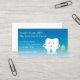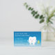 Um cartão de visita para dentistas ou higienistas dentais com o dente de sorriso que guardara o floss dental em um fundo azul.