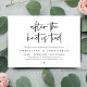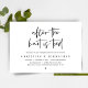 O moderno Black Script temático, cartão de convite para elopementos de casamento (Felizmente, para sempre após a Celebração). É perfeito para sua recepção de elopemento de casamento/festa de celebração de posto. Adicione seus detalhes em caracteres pretos / letras correspondentes.