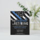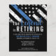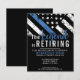 Este design apresenta uma bandeira da polícia com listras pretas e brancas, e uma fina faixa azul de linha também. O texto "A lenda está se aposentando" se senta acima de todos os detalhes partidários para os detalhes do polícia aposentado, xerife, capitão ou chefe do partido aposentado.