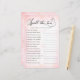 Faça os convidados rindo e relembrando com este divertido jogo de chá de panela "Derramar o Chá". Apresentando um fundo de aquarela cor-de-rosa suave, trabalho de rolagem de vintage e um roteiro elegante, esta placa solicita aos convidados que respondam a perguntas sobre a noiva a ser. É uma forma alegre e encantadora de adicionar conexão e entretenimento à sua festa de chá ou celebração teatral de jardim. Perfeito para: ・ Jogos de chá de panela para festas de chá ・ Atividades de vintage ou chá romântica ・ Combinação com seus cartões e placas de conselho do "Derramar o Tea" ・ Criando momentos memoráveis com a noiva a ser